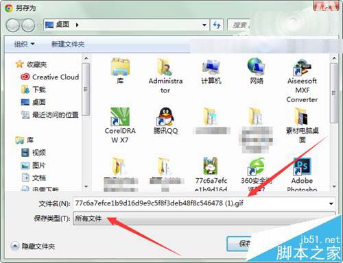 8、當然我們除了在圖片的地址欄中進行圖片類型的更改,也可以在圖片進行保存的時候做一個更改。我們在圖片上點擊另存為之后,在它彈出的保存界面中把它的文件名做一個更改,把原來的jpg改為gif。然后把它的保存類型選擇所有文件。然后點擊保存。這樣所進行保存的圖片打開后也是可以動的圖片。