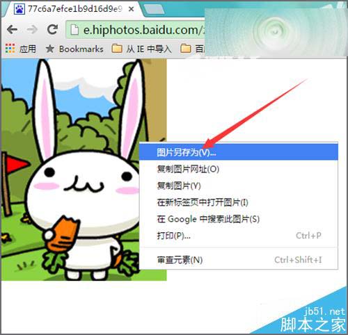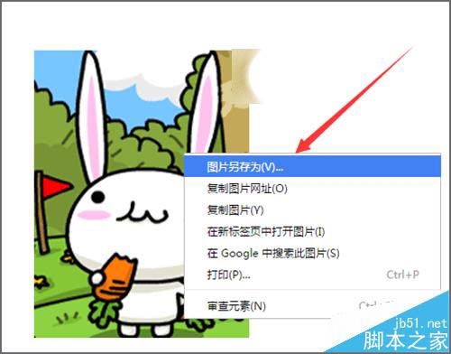 1、就在網上搜索一些動態的圖片,就以這個吃胡蘿卜的小白免為例來進行操作。當我們選中圖片,然后在圖片上點擊右鍵,在它的下拉列表中可以看到它有一個圖片另存為。