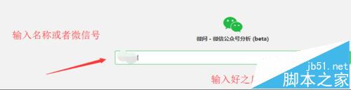 2、進(jìn)入頁面之后,在屏幕上有一個(gè)顯眼的輸入框,在此輸入微信公眾號的名稱或者微信號(輸入微信號更加精準(zhǔn)),點(diǎn)擊查詢。