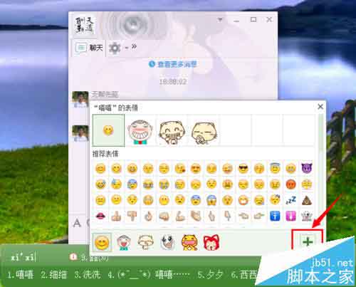 8、如果大家覺得這樣的表情太普通了,我們還可以在表情框的右下角,點(diǎn)擊添加按鈕