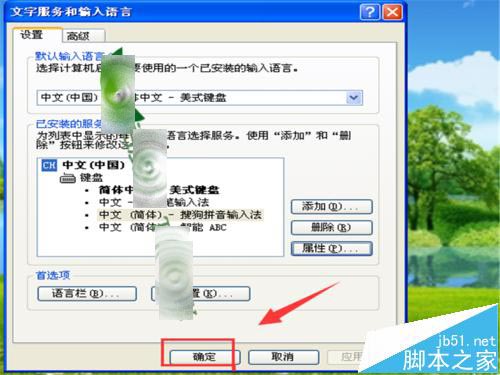 7、文字服務和輸入語言設置頁面中點確定,如下面圖片中所示。