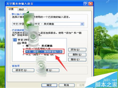 2、點設置,進入文字服務和輸入語言設置頁面,點中文搜狗輸入法,如下面圖片中所示。