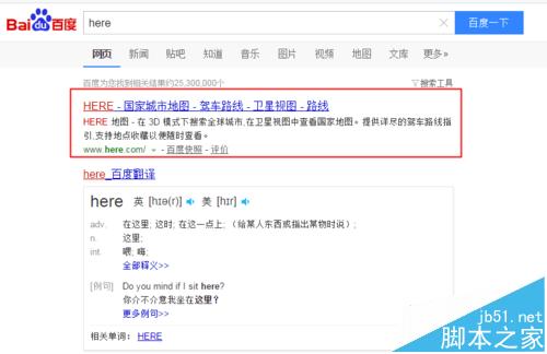 2、我們直接搜索here地圖的關鍵字,下邊出現好多搜索結果
