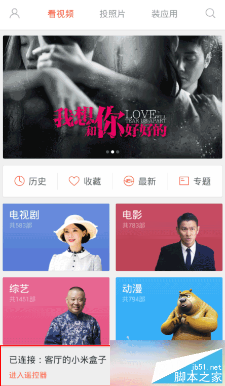 在小米投屏神器主界面,我們可以看到最上面的“看視頻”“投照片”“裝應用”三個選項,我們需要給小米盒子裝軟件的話,進入“裝應用”選項進行;