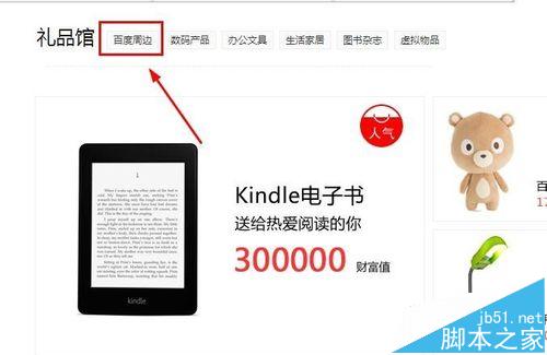 2、商城中有兩個區(qū)域,活動區(qū)和禮品館,我們找到禮品館,在禮品館下面有個百度周邊的欄目,點(diǎn)擊百度周邊