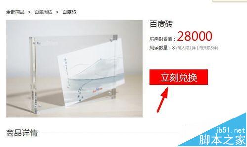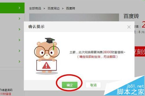 4、進(jìn)入到兌換的界面及百度磚的詳細(xì)說明介紹頁面,此次兌換需要消費(fèi)28000財(cái)富值哦。