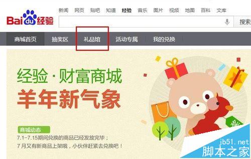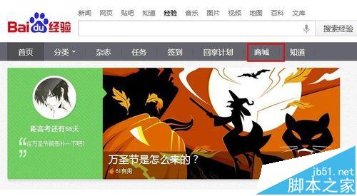 1、打開百度經(jīng)驗(yàn)首頁,在首頁中的菜單欄中有個商城的欄目,點(diǎn)擊商城