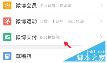 2.界面向下滑,找到微博支付并點擊