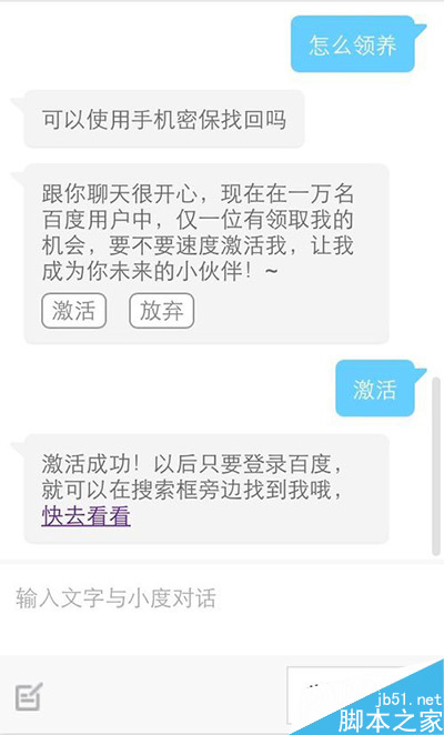 百度的智能機器人百小度已經推出有一段時間了,現在好多人還不知道百小度在哪里,也不知道怎么激活百小度。下面小編就來教大家領養激活百小度。