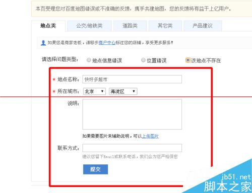 我們知道百度地圖上邊有這樣和那樣的類型,那你知道那地方已經不再了,怎么報錯給,百度地圖,這樣他們知道之后就會修改,避免其他人到這個地方找不到。