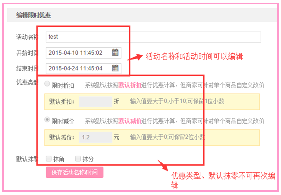 a) 在保留原有的限時(shí)折扣基礎(chǔ)上,增加了直接設(shè)置限時(shí)特價(jià)以及相應(yīng)的抹零功能。