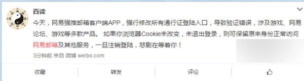然而,據(jù)網(wǎng)友反映,出現(xiàn)故障的不僅僅是網(wǎng)易郵箱產(chǎn)品,網(wǎng)易旗下的其它產(chǎn)品例如網(wǎng)易游戲也出現(xiàn)了賬號無法登陸現(xiàn)象,但無法確認是否為個例。值得注意的是,有網(wǎng)友爆料稱,此次故障的原因是“網(wǎng)易強推郵箱客戶端APP,強行修改所有通行證登陸入口,導(dǎo)致驗證錯誤,涉及游戲、網(wǎng)易論壇、游戲等多款產(chǎn)品。”但無法證實該網(wǎng)友的說法是否正確。