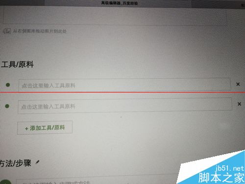 4、工具/原料最好要寫,也可以提高通過率哦。如果沒有什么工具/原料,可以點擊右邊的“差號”刪除,至少寫一個吧。也可以點擊下面的“添加工具原料”添加