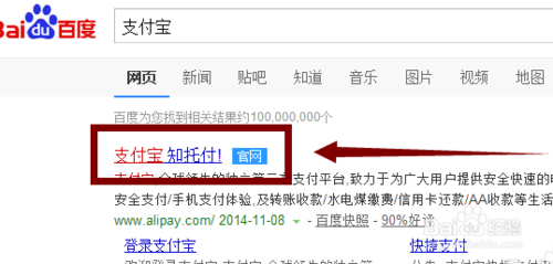 2、搜索出來后,點(diǎn)擊支付寶官網(wǎng)登陸