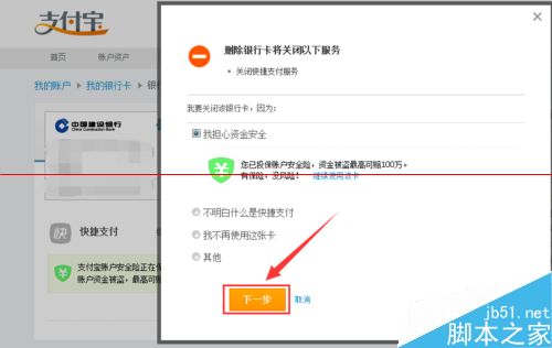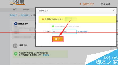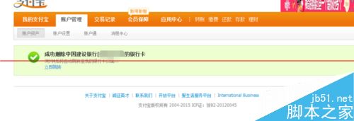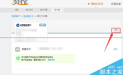 打開后會如下圖所示,然后在銀行卡的右邊有一個刪除選項,單擊“刪除”,在彈出的對話中,點擊“確定,就可以解除銀行卡的綁定了。