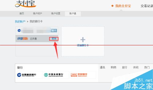 進入管理頁面后會呈現下圖所示的模樣。在銀行卡的右邊點擊“管理”。