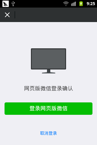 點擊 “ 登錄網頁版微信 ”按鈕,手機上顯示如下