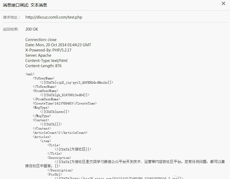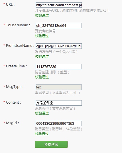 微信調試器是方倍工作室開發的用于微信公眾平臺接口開發調試的工具,具有Token校驗、模擬關注及取消關注、發送文本/圖片/語音/視頻/位置/鏈接、模擬事件發送等功能。其原型是微擎的Emulator。