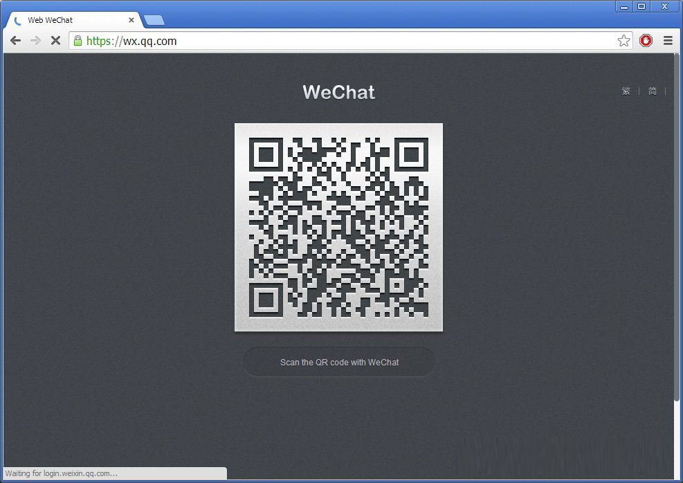 二、使用網頁版微信調試瀏覽器中打開微信網頁版地址 https://wx.qq.com/,頁面顯示一個二維碼