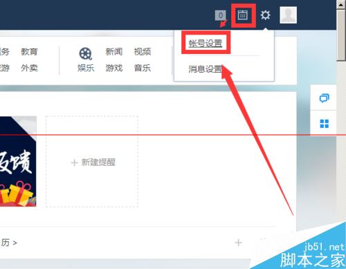 2、點擊右上角的 設置 選項中的 賬號設置選項。