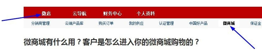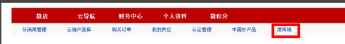 步驟十一:點(diǎn)擊藍(lán)色字體“微商城”就能進(jìn)入已綁定的商城界面,至此微商城全面開通,微商城操作后臺(tái)和微店后臺(tái)在一起,要操控微商城必須去電腦端登錄自己的微店后臺(tái),如下圖