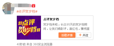 以上就是微博#點評賀歲檔#如何點評電影贏紅包方法介紹,希望能對大家有所幫助!