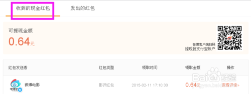 7、您在收到的先進紅包里面可以看到自己的紅包,通過手機客戶端可以提現到支付寶哦