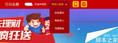 將鼠標放到右上角“我的小金庫”處,彈出2級菜單,點擊“百度錢包”,如下圖: