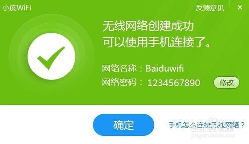6、然后就安裝成功了,系統會給你一個網絡名稱和網絡密碼,不過比較簡單。