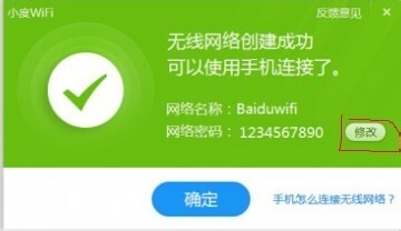 7、系統給的網絡名稱和網絡密碼要是覺得不安全,可以自己手動設置。單擊【修改】