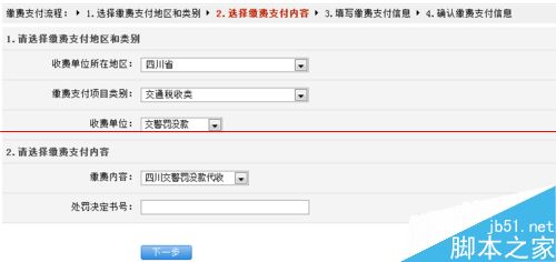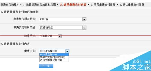 3、選擇繳費支付內容,選擇“四川交通罰沒款代收“