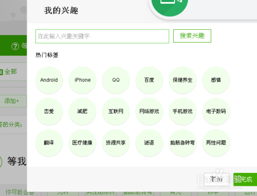 3、下面添加自己的分類,選擇自己喜歡和擅長的方面添加如:百度,育兒,電子,等等。