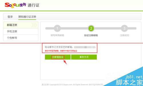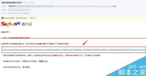3、使用郵箱注冊,輸入郵箱、密碼和驗證碼后點擊【注冊】按鈕,搜狗通行證會發送一封驗證郵件到注冊郵箱里,打開注冊郵箱,找到驗證郵件后,點擊郵件中間位置的鏈接完成注冊,如圖所示: