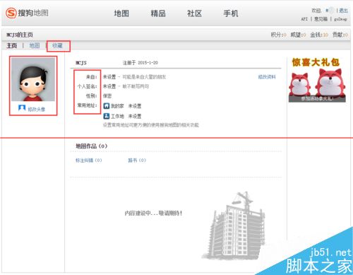 6、最后我們可以點擊搜狗地圖賬號,修改用戶資料了,在地圖中也可以開始收藏地點和線路了,如圖所示: