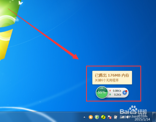 這樣就可以成功恢復(fù)顯示【360加速球】了,雙擊它你就可以快捷清理電腦系統(tǒng)內(nèi)存,加快電腦運(yùn)行速度。