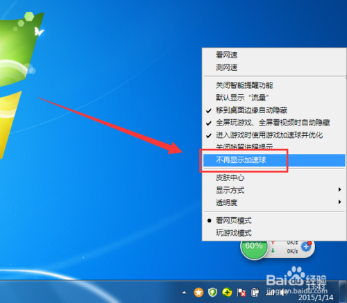 然后右鍵單擊【360加速球】,在打開(kāi)的列表中單擊【不再顯示加速球】這個(gè)選項(xiàng),如下圖所示。