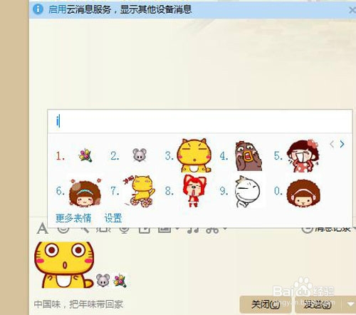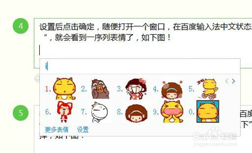 4、設(shè)置后點擊確定,隨便打開一個窗口,在百度輸入法中文狀態(tài)下選擇輸入”i“,就會看到一序列圖片表情了,如下圖!