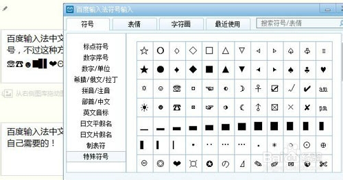 2、百度輸入法中文狀態(tài)欄上右鍵選擇工具箱——表情和符號——特殊符號等選擇自己需要的!