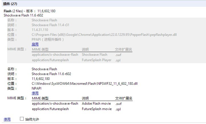 將PPAPI的停用,將NPAPI的啟用,設置結果如上圖,問題解決完畢。謝謝!