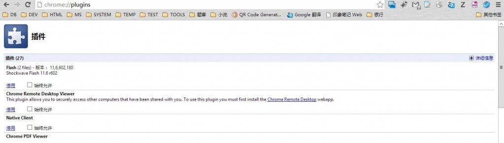 終于讓我解決了,只需要在在Chrome瀏覽器中輸入chrome://plugins,進入下列界面