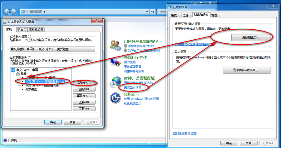 方法一:右擊任務欄上的語言圖標,然后單擊“設置"----添加。找到搜狗輸入法添加。