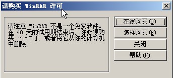 1、WinRAR軟件安裝并使用了一段時間后,老彈出煩人的購買許可框