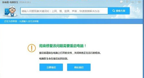 我使用的是新毒霸下面的一個小的修復(fù)工作完美卸載光速輸入法的。進入新毒霸后點擊【電腦殺毒】再點擊右下角處【更多疑問,電腦腦醫(yī)生幫你解決】