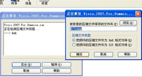3、設定好后點擊"確定",WinRAR就會開始對受損的壓縮文件進行修復,并會以對話框的形式顯示修復的全過程。