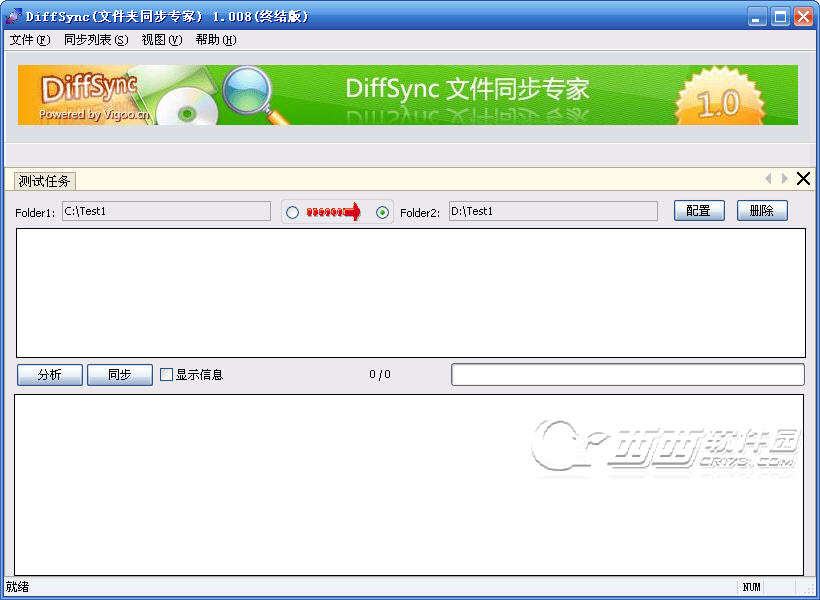 同步任務配置好后,按“分析”,即開始進行對比,然后會提示有多少文件或目錄需要同步,速度很快