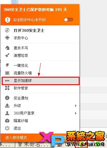 當(dāng)然,如果您以后還想讓他出來(lái),可在在任務(wù)欄里用鼠標(biāo)右鍵單擊360安全衛(wèi)士圖標(biāo),然后從彈出的菜單里選擇“顯示加速球”。