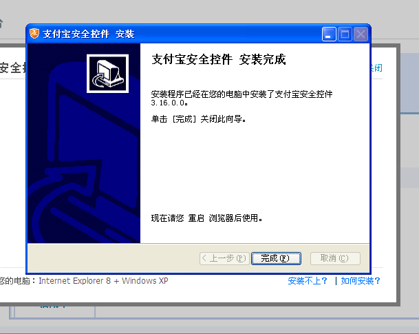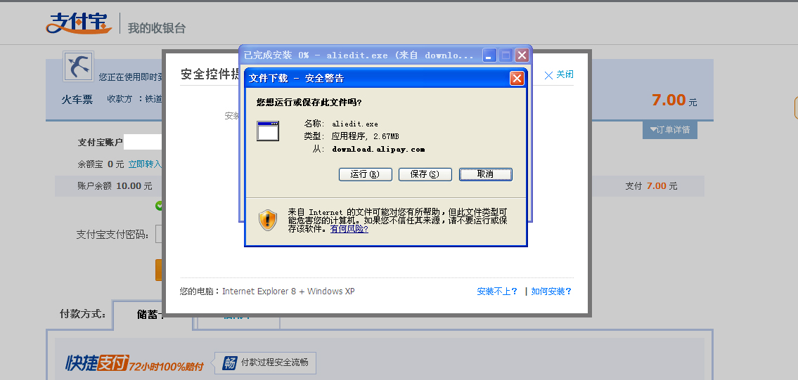 15、進入支付寶安全控件安裝界面后,點擊“運行”按鈕