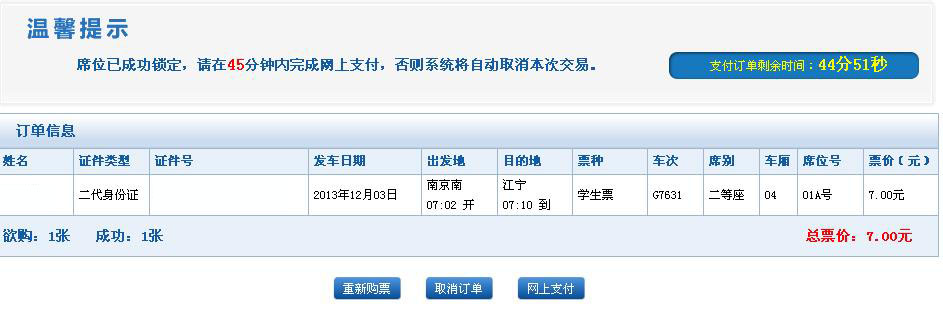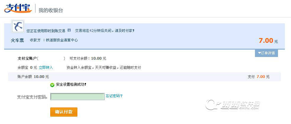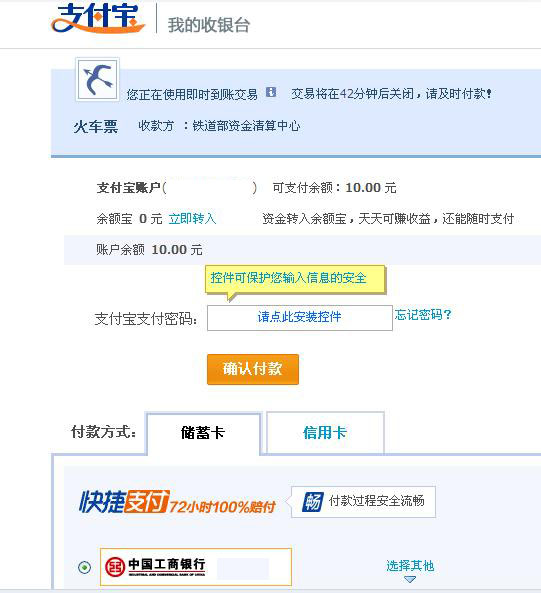 整個過程和淘寶購物一樣,支付寶購票可以選擇用支付寶快捷支付、支付寶余額或余額寶進行付款,整個支付過程短短5秒就能完成,也沒有收取手續費。
