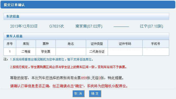 9、點擊“預訂”按鈕后填寫乘車人信息,然后提交訂單
