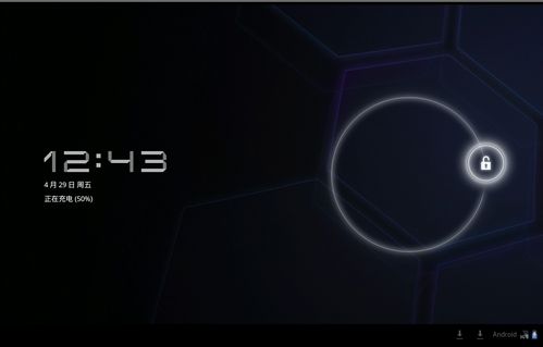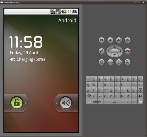 等待一會兒,Android的home screen出現了!你可以用鼠標點進行操作,比如拖動解鎖,需要注意的是你不需要雙擊來打開應用。左邊的模擬鍵盤可以用鼠標點擊操作,打字也可以用電腦的鍵盤進行操作。